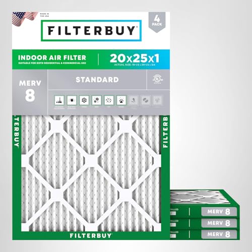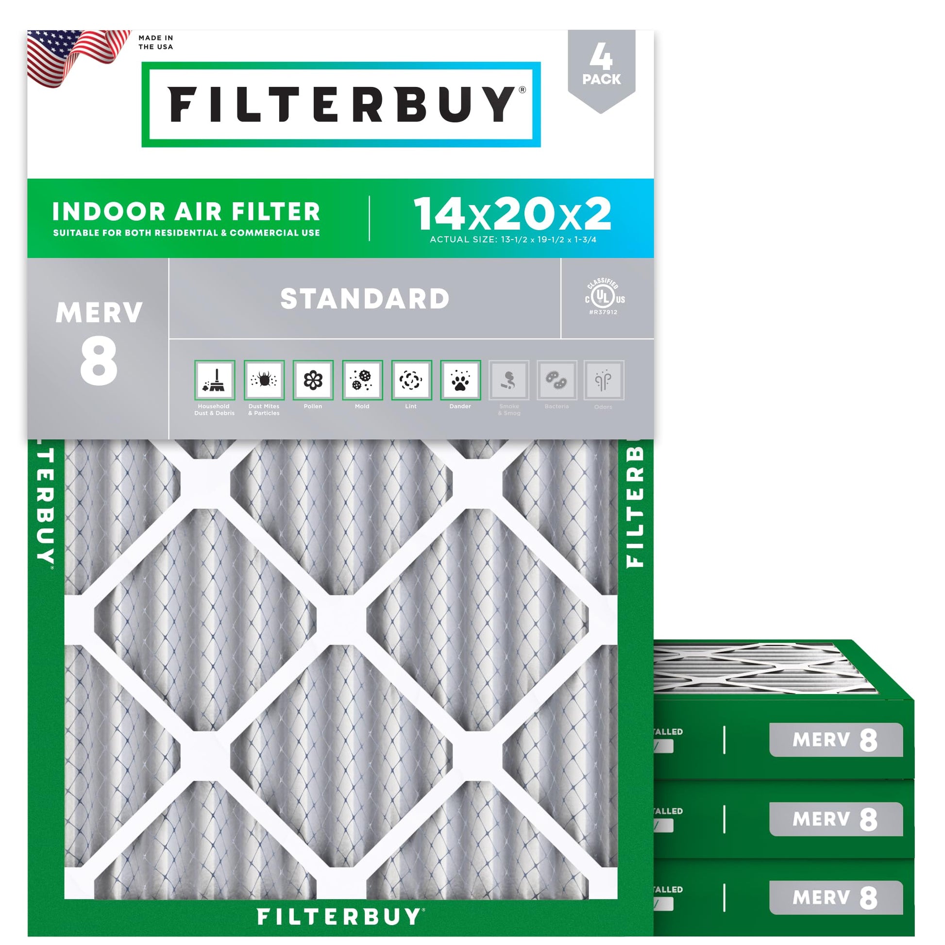 Filterbuy 1" Air Filter MERV 8 Essential Dust & Allergy Defense (4-Pack), Electrostatic Pleated HVAC AC Furnace Filters Replacement, Made in USA
